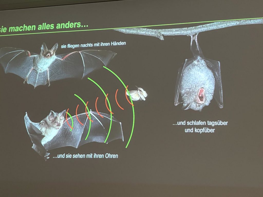 Mit vielen Bildern und Videos präsentiert der Vortrag auf unterhaltsame Weise die faszinierende Welt der Fledertiere, bringt die Zuschauer mit kuriosen Infos zum Staunen und vermittelt, warum wir diese einzigartigen Geschöpfe schützen müssen.
