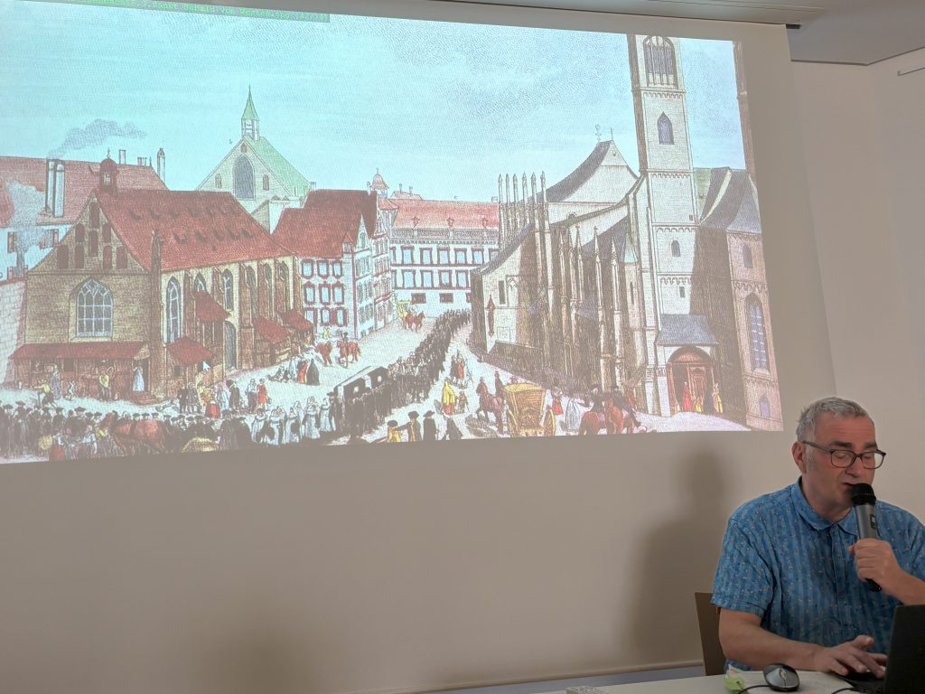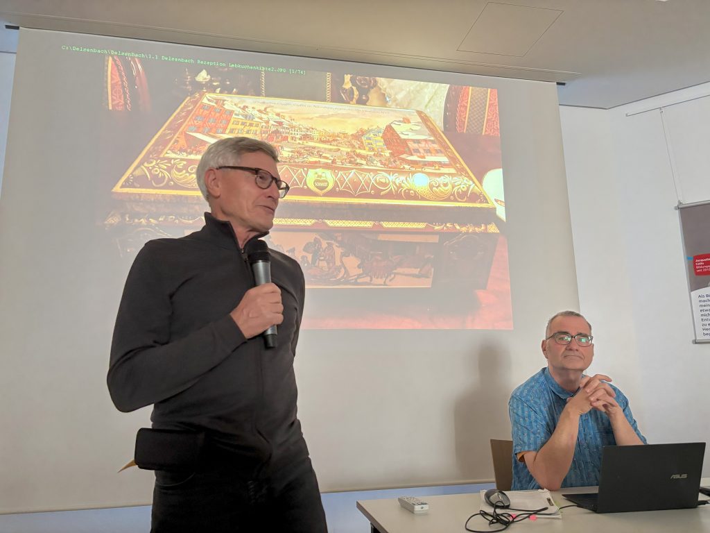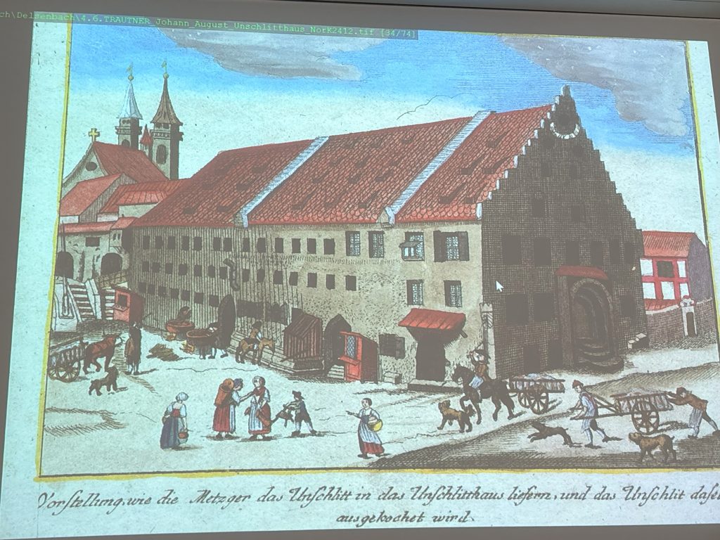 Der Kupferstecher Johann Adam Delsenbach (1687 – 1765) dokumentierte in seinem Werk das Nürnberg der Barockzeit – nicht nur in seinen Bauwerken, sondern auch mit seinen Bewohnern bei Arbeit und Freizeit. Seine „Nürnberger Prospekte“ sind eine unerschöpfliche, detailreiche Quelle der Sozial- und Alltagsgeschichte der Noris im 18. Jahrhundert. Heute ist sein Oeuvre vor allem noch auf Lebkuchendosen präsent.