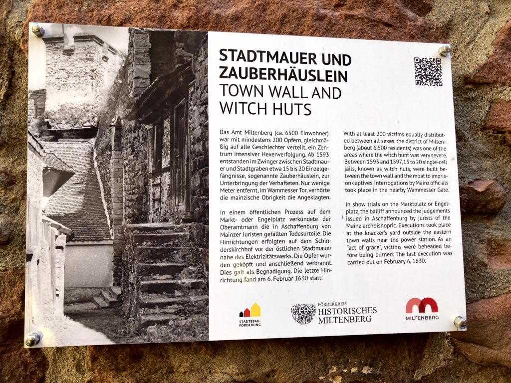 Bei einer Stadtführung erfuhren wir viel Wissenswertes und Unterhaltsames zur Geschichte Miltenbergs. Bittere Vergangenheit ist auch hier die Zeit der Hexenverbrennung in einer besonderen Ausprägung, da in Miltenberg viele Männer verbrannt worden waren.